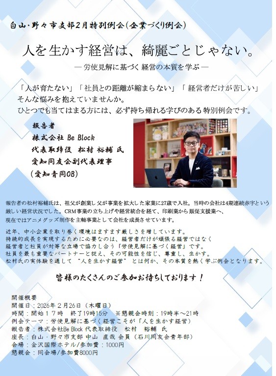 三代目として会社を継ぐ中で、「何のために経営するのか」がずっと曖昧なままでした。そんな私に強く響いたのが、同友会でかけてもらった「頼…