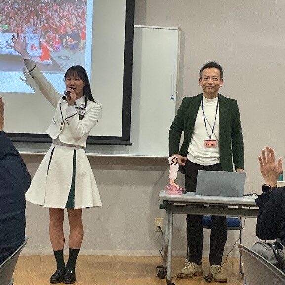 当日は、(株)橋本清文堂が北陸を拠点に活動するローカルアイドルグループ“ほくりくアイドル部”のグッズ作成に携わったご縁から、同グループの「辰巳未来春」さんも参加し、例会は大いに盛り上がりました。そして参加者にとっては「同友会で何を学びたいのか」を改めて深く考える貴重な機会となりました。